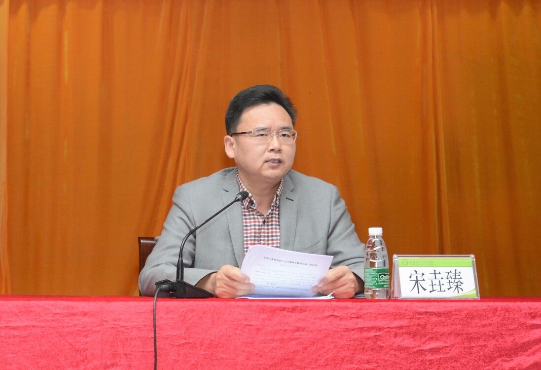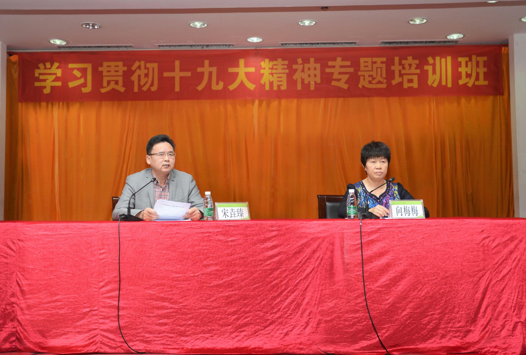 开班仪式上,宋垚臻就开好本次专题培训班、在全校持续掀起学习贯彻十九大精神热潮提出以下要求和部署:一是以高度政治自觉,重视这次学习培训。党的十九大是在全面建成小康社会决胜阶段、中国特色社会主义进入新时代的关键时期召开的一次具有划时代、里程碑意义的大会。党的十九大在政治上、理论上、实践上、制度上取得了一系列重大成果,就新时代坚持和发展中国特色社会主义的一系列重要理论和实践问题阐明了大政方针,就推动党和国家各方面工作制定了战略部署,是我们党在新时代开启新征程、续写新篇章的政治宣言和行动纲领。11月1日,中共中央印发了《关于认真学习宣传贯彻党的十九大精神的决定》,对当前和今后学习贯彻十九大精神作出了总体要求和全面部署,决定指出,要紧密结合党中央即将开展的“不忘初心、牢记使命”主题教育,面向全体党员开展多形式、分层次、全覆盖的全员培训,组织广大党员干部认真学习党的十九大精神。各地区各部门要举办培训班、学习班,集中一段时间对全国县处级以上党员领导干部进行集中轮训,分期分批对党员干部进行系统培训。近日,省委按照中央部署,印发《关于在全省党员干部中深入开展党的十九大精神大学习大培训的实施方案》,对在全省党员干部中开展学习贯彻十九大精神作了具体安排。11月27日,中共广东省委十二届二次全会又专门研究通过了《中共广东省委关于持续深入学习宣传贯彻党的十九大精神推动习近平新时代中国特色社会主义思想在南粤大地落地生根结出丰硕成果的决定》,对持续深入学习宣传贯彻党的十九大精神作了进一步具体部署。学校党委组织本次专题培训班,目的在于通过组织集中学习,使参会人员更加系统全面准确理解十九大精神,引导大家进一步牢固树立政治意识、大局意识、核心意识、看齐意识,坚定道路自信、理论自信、制度自信、文化自信,在政治立场、政治方向、政治原则、政治道路上同以习近平同志为核心的党中央保持高度一致,自觉维护以习近平同志为核心的党中央权威和集中统一领导,使十九大精神成为推动学校各项事业发展的强大思想武器。宋垚臻指出,全体参会人员要高度重视本次培训,认真参加各项学习安排,努力获得更大收获。二是知行合一,在学懂弄通做实上下苦功夫。学习十九大精神,首先要按照习近平总书记的讲话要求,原汁原味地学,在“学懂、弄通、做实”上下功夫;要按照省委书记李希同志的讲话要求,将历史与现实相结合、当前与未来相结合、中国与世界相结合,整体把握、全面把握;要把握住党的十九大精神的思想精髓、核心要义,做到“六个聚焦”。具体到学校来讲,就是要牢牢抓住学校的办学实际,围绕当前的中心工作来学习。一方面,我们要以认认真真、老老实实、端端正正的态度,逐字逐句、逐段逐章认真研读、反复品读十九大报告和党章原文,努力把十九大提出的每个重要观点都领会准、领会深、领会透。另一方面,要紧密结合校史、校情整体把握、突出重点来学。当前,学校在取得长足进步的同时,还存在人才培养的质量有待进一步提高,高水平学术领军人物匮乏,学科建设整体水平不高,重大科研项目不多,高水平科研成果较少,办学硬件条件制约学校进一步发展等不足。我们要对标十九大的部署要求,既要发扬成绩,乘势而上,更要突出抓重点、补短板、强弱项。参会人员在培训学习的过程中要结合本部门、本单位、本岗位的工作实际,有目的、有重点地对一些问题进行深入思考和研究,努力提高自己的思想水平、理论水平、政策水平和分析问题、解决问题的能力, 努力把十九大精神内化于心,外化于行,把学习贯彻十九大精神体现在真抓实干、推进学校改革发展的一项项工作中,体现在攻坚克难、破解学校发展一个个问题上,推进学校各项事业更上一个新台阶,切实让广大师生员工享受到学校改革发展的成果和实惠。三是以本次专题培训班为加油站,推动党的十九大精神学习宣传贯彻往深里走、往实里抓。(一)加强组织领导、推动学习深入。学校各级党组织要继续切实肩负起领导责任和政治责任,各级党组织主要负责同志要承担起第一责任人职责,继续构建全方位学习宣传网络。党员领导干部要以身作则,带头学、带头讲、带头干。组织部门要把学习宣传贯彻与干部教育培训、加强领导班子和基层党组织建设、开展“两学一做”学习教育结合起来,宣传部门要牢牢把握正确导向,紧密结合工作实际,认真制定持续深入学习宣传十九大精神的工作方案,工会、团委要开展具有特色的学习教育活动,形成学习宣传贯彻十九大精神的强大合力,推动学习不断结出丰硕成果,成为推动学校事业发展的强大动力。(二)紧密联系实际,创新方式方法。要按照“两学一做”常态化、制度化的要求,把学习十九大精神与学习《习近平谈治国理政》第二卷结合起来,与学习党章结合起来,与即将开展的“不忘初心、牢记使命”主题教育结合起来,与学校发展的重点工作结合起来,创新形式载体,开展内容丰富、特点鲜明、形式多样的主题党日活动和团日活动。充分运用各种深受师生喜爱的鲜活方式,善于运用新媒体新技术,宣传党的十九大精神,不断增强学习宣传教育的吸引力和感染力。要把习近平新时代中国特色社会主义思想