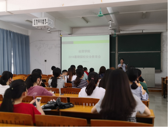 为切实做好2018年暑假期间学生安全教育工作,确保留校学生安全度过暑假,7月11日下午,经贸学院在杨钊杨勋楼209室召开2018年暑期留校安全教育会。本次会议由经贸学院辅导员刘姝利老师主持,经贸学院党总支副书记许二梅老师,辅导员赵丽老师、余封亮老师以及经贸学院全体暑期留校同学参加了本次会议。