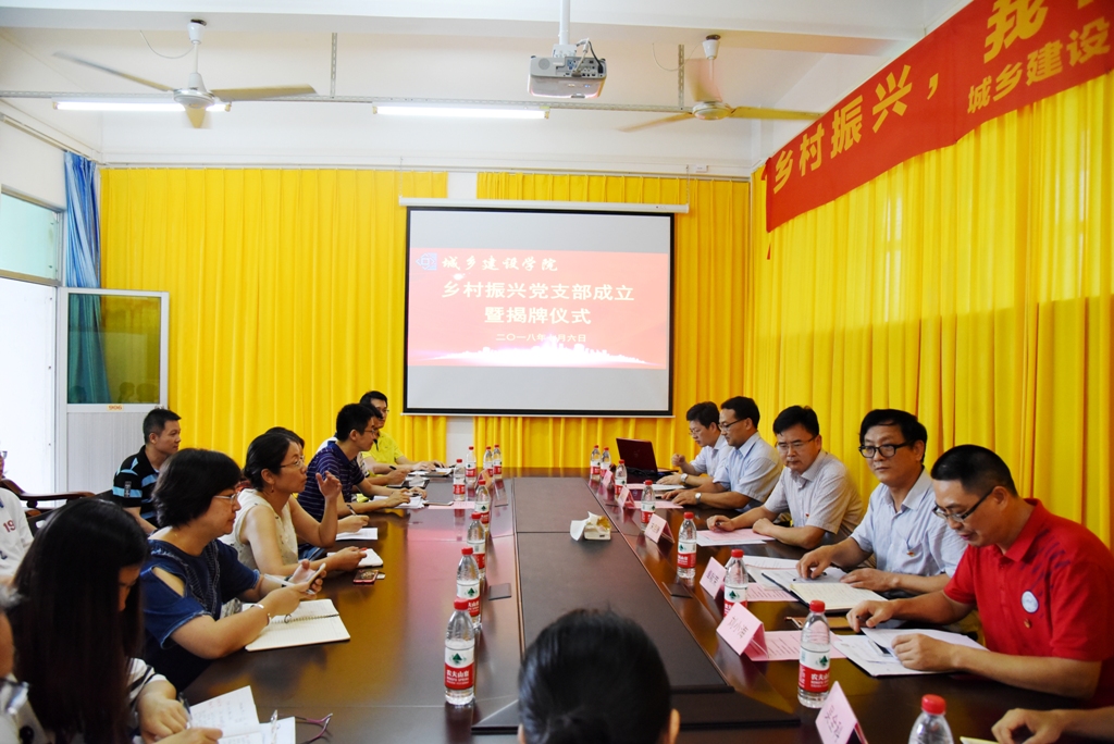 7月6日下午,城乡建设学院乡村振兴党支部成立暨揭牌仪式在海珠校区教学楼举行。学校党委书记宋垚臻出席并讲话,党委宣传部负责人、城乡建设学院党领导班子成员及乡村振兴党支部全体成员参加了仪式。仪式由城乡建设学院党总支副书记刘小海主持。