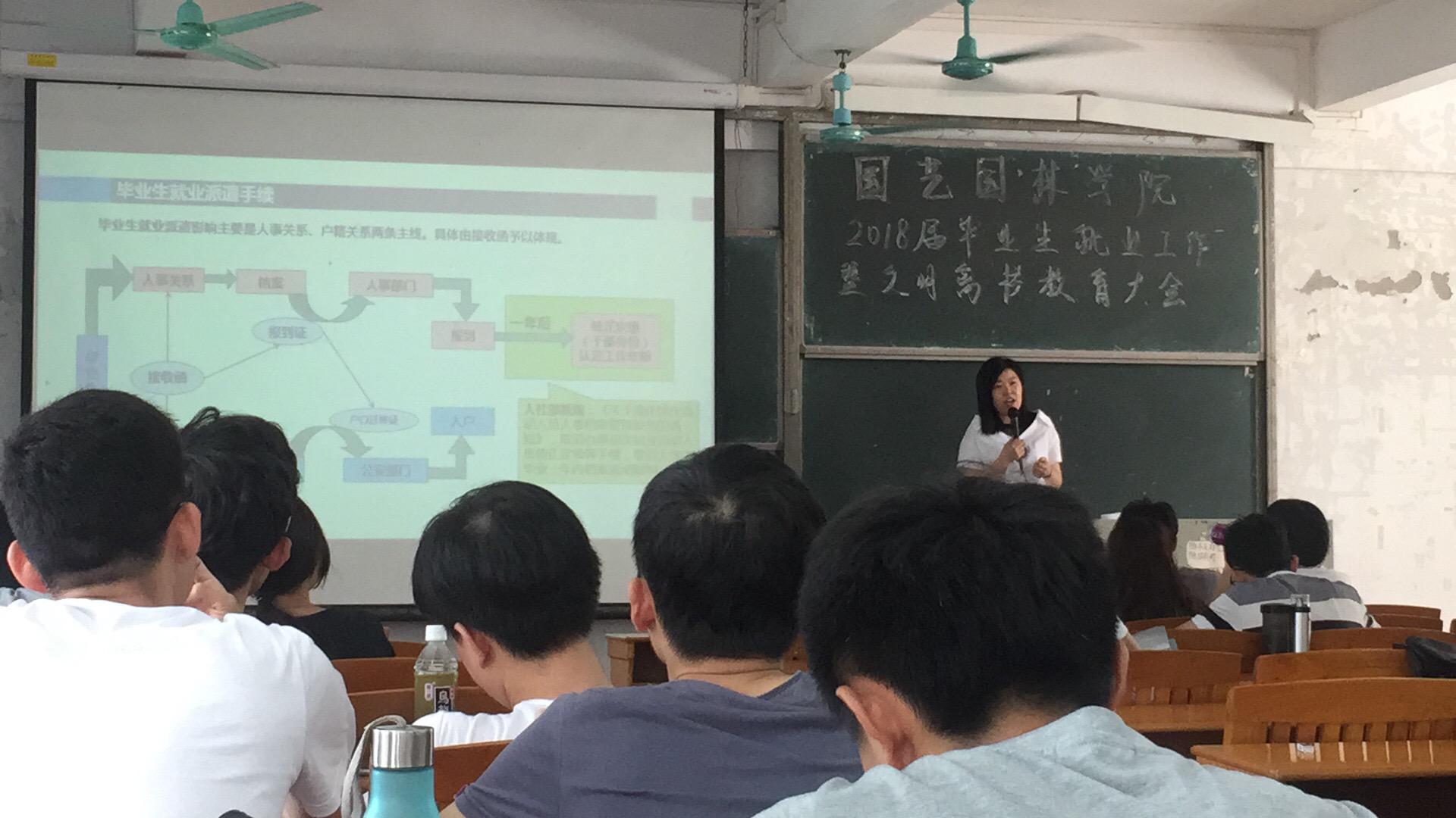 为确保2018届毕业生顺利毕业、充分就业、安全离校,园艺园林学院于5月22日举办2018届毕业生文明离校教育大会,园艺园林学院党总支副书记石利刚,辅导员卢昱静老师出席本次会议,2018届全体毕业生参加会议。