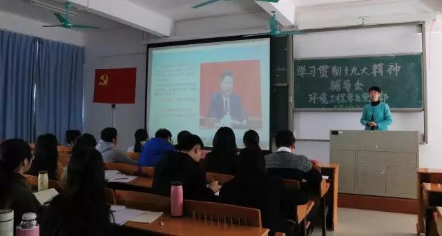 12月22日,党委组织部部长吴亚玲向环境工程学生党支部作学习贯彻党的十九大精神辅导专题报告。环境科学与工程学院党总支书记黄礼彬、副书记吴燕丽、青年委员兼环境工程学生党支部书记王品和环境工程学生党支部全体党员、发展对象聆听了本次辅导。