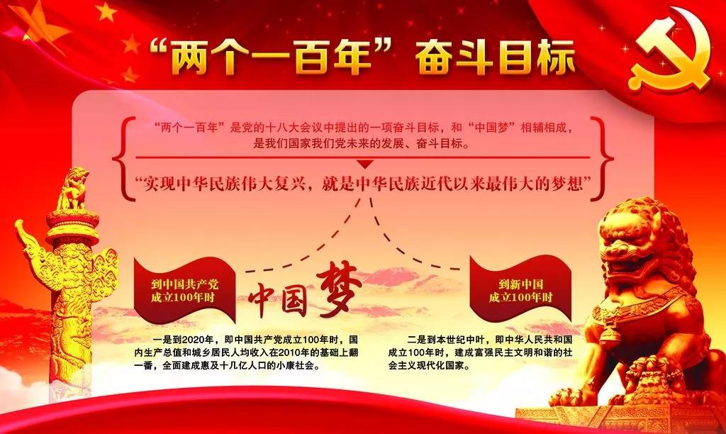 “我们既要全面建成小康社会、实现第一个百年奋斗目标,又要乘势而上开启全面建设社会主义现代化国家新征程,向第二个百年奋斗目标进军。”习近平总书记在党的十九大报告中的庄严宣告,在亿万人民心中久久回响,引发强烈共鸣。这是中国巨轮在奔腾不息的历史长河中的新航标,这是实现中华民族伟大复兴中国梦的动员令。“两个一百年”奋斗目标,历史地交汇在党的十九大到二十大期间。十九大报告提出,在2020年全面建成小康社会、实现第一个百年奋斗目标的基础上,再奋斗15年,到2035年基本实现社会主义现代化。从2035年到本世纪中叶,在基本实现现代化的基础上,再奋斗15年,把我国建成富强民主文明和谐美丽的社会主义现代化强国。这一壮阔新征程的时间表、路线图,既立足于第一个一百年的冲刺决胜,又着眼于第二个一百年的承接远谋,号召我们坚韧不拔、锲而不舍,奋力谱写新时代中国特色社会主义发展的壮丽篇章,新时代催生新的伟大征程。