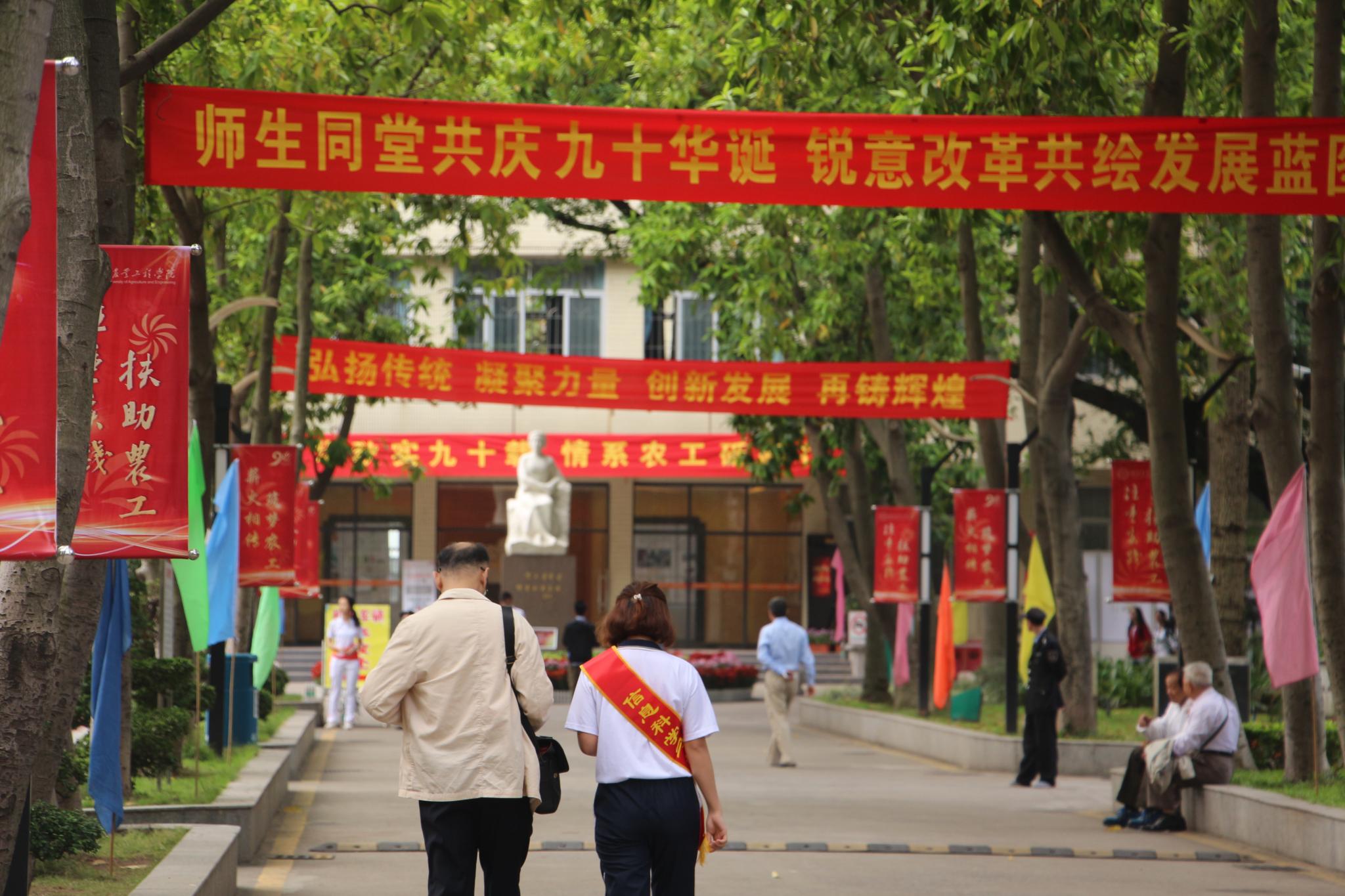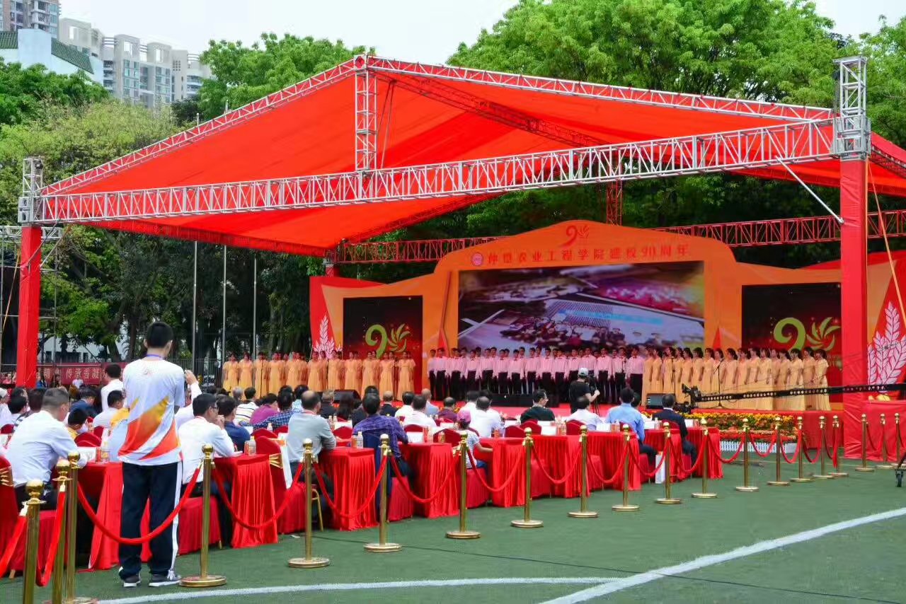 校庆当天,白云校区的重头戏是以“薪火相传,筑梦农工”为主题的校庆纪念晚会。晚会即将开始之际,全场师生和校友们满怀激情,齐声高喊着倒数迎接晚会的开幕,信息科学与技术学院副院长刘磊安作为晚会的主持人之一,在晚会开始时最先表达了对母校九十华诞的祝福。接着来自各地的校友协同仲园师生和其他社会人士纷纷献上精彩纷呈的表演,为母校庆生,晚会掀起一波又一波的高潮,欢呼声和掌声响彻白云的夜空。