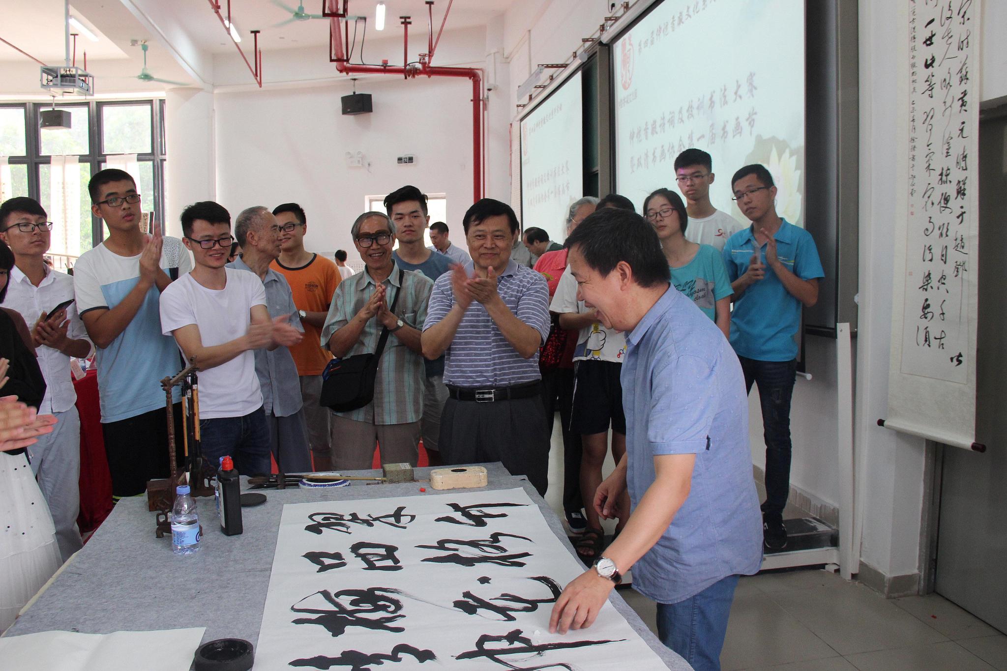 大赛伊始,高岳仑致辞。他对本次参加书画大赛的嘉宾及兄弟院校代表致以衷心的感谢,并以“可喜、可贺、感谢、祝福”八字概括本次活动。可喜于相遇美丽的仲园,可贺于本次活动首次融入了忘年交——在文化交流上忘记年龄的界限,感谢的是在场各位参加本次活动,祝福仲恺学子要在学习期间汲取知识,加强交流。