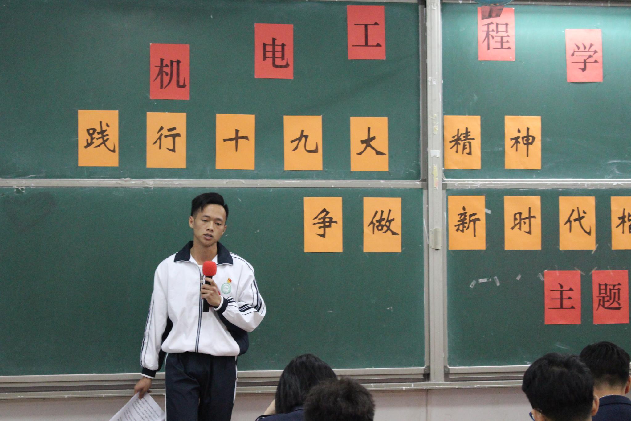 为深入学习践行十九大精神,增强青年学生的责任感和使命感,12月10日下午,机电工程学院在白云校区杨钊杨勋楼103室举行了“践行十九大精神,争做新时代楷模”主题演讲比赛决赛。该院党总支书记张平湖出席,学院党务中心主任尹彩霞、副主任陆小玲、学生会主席余卫凯、秘书长翁曼娜、团委第一副书记吴嘉诚、第二副书记李志鹏担任本次比赛的评委。院学生会、团委、青年志愿者协会的干部代表及各班学生代表共150多人观看了比赛。
