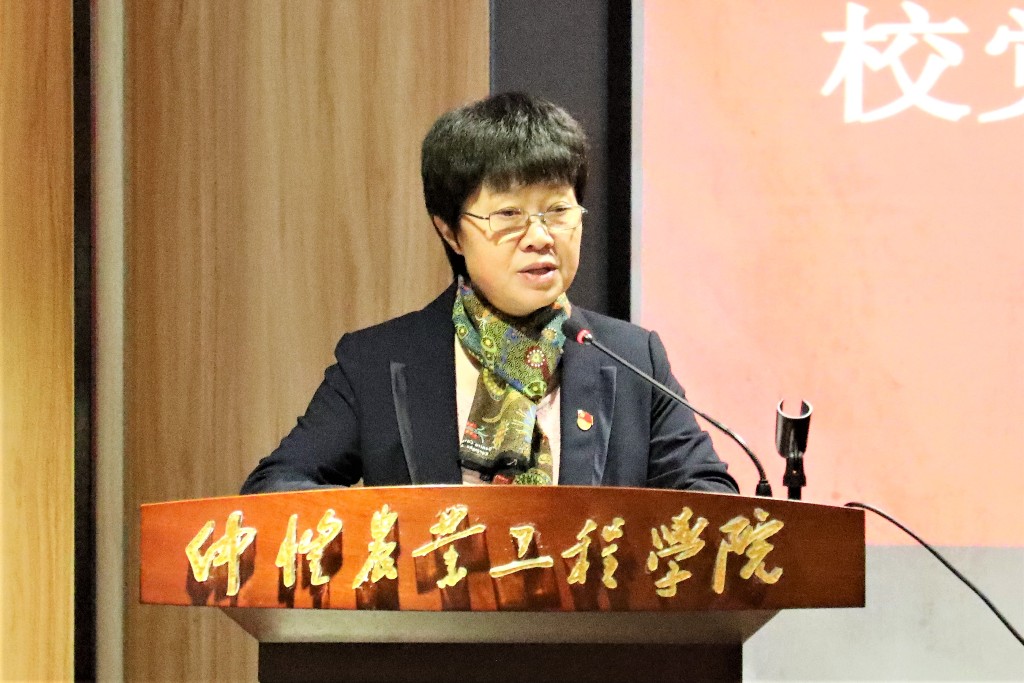 大会开场,全体人员起立奏唱国歌。随后,校党委副书记、纪委书记向梅梅教授首先代表学校对学习会的成立表示祝贺,指出习近平新时代中国特色社会主义思想学习研究会作为我校大学生第一个理论学习社团,能更好地带动全校大学生的思想理论学习热情,树立为实现中华民族伟大复兴而奋斗的理想信念,为此对学习会提出三点要求:希望学习会成员借助学习研究会的平台,推动习近平中国特色社会主义思想学习深入人心;积极构建第二课堂教学体系,推进我校实现思想政治理论课的教学改革创新;通过学习习近平新时代中国特色社会主义思想,坚定理想信念,强化责任担当,将理论与实践结合,做到“学思践悟”。向梅梅教授还结合自身学习成长的人生经历,向学员生动阐释了“贵在坚持,保持热情,不忘初心,牢记使命”这一理念的力量。