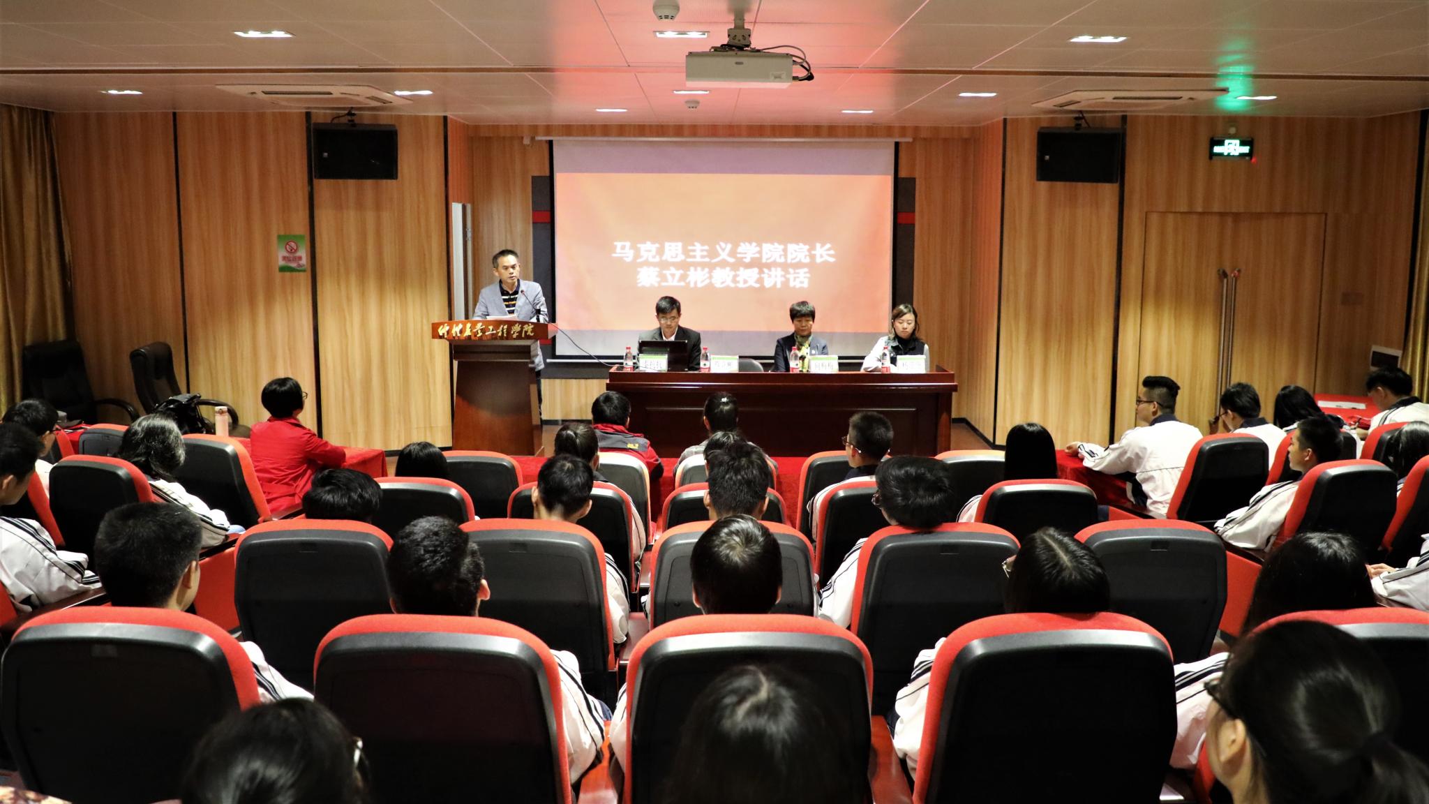 接着,马克思主义学院蔡立彬教授指出对成立学习会三个方面的新认识:一是“新思想”。思想是行动的指南,学习会以马克思列宁主义毛泽东思想、邓小平理论、三个代表重要思想、科学发展观和习近平新时代中国特色社会主义思想作为指导思想,正是以正确的思想来引领我们这些全面建设小康社会、基本实现现代化、建成社会主义现代化强国的见证者和实践者的行动。二是“新模式”。强调了学习会要成为一个引领和推动大学生第二课堂的理论学习社团,成为一个思政课改革创新的参与者和实践者,提高大学生对思政课的满意度和获得感。三是“新路径”。强调了学习会要学习会坚持把学习习近平新时代中国特色社会主义思想与现实生活中的热点、难点问题结合起来,与“多读书、读好书”活动结合起来,与国家重大庆典和纪念活动结合起来,与学习党的重大决议结合起来,与新时代大学生实际行动结合起来。