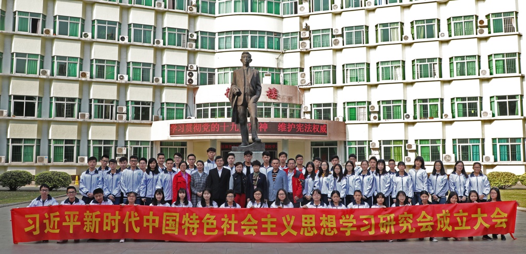 “青年兴则国家兴,青年强则国家强。青年一代有理想、有本领、有担当,国家就有前途,民族就有希望。”习总书记在党的十九大会议上殷殷叮嘱青年一代的话语振奋了每一位青年大学生的心。12月7日下午,我校第一个学生自主学习马克思主义的理论学习社团“习近平新时代中国特色社会主义思想学习研究会”在海珠校区英东楼111宣讲室举行成立大会。校党委副书记、纪委书记向梅梅教授,马克思主义学院蔡立彬院长,校团委副书记杨珊珊、校团委林燕玲老师,马克思主义学院李增添副教授以及王桂花博士出席此次大会,参加大会的还有两个校区共53位学习会组织干部以及会员同学。会议由马克思主义学院秦抗抗副院长主持。