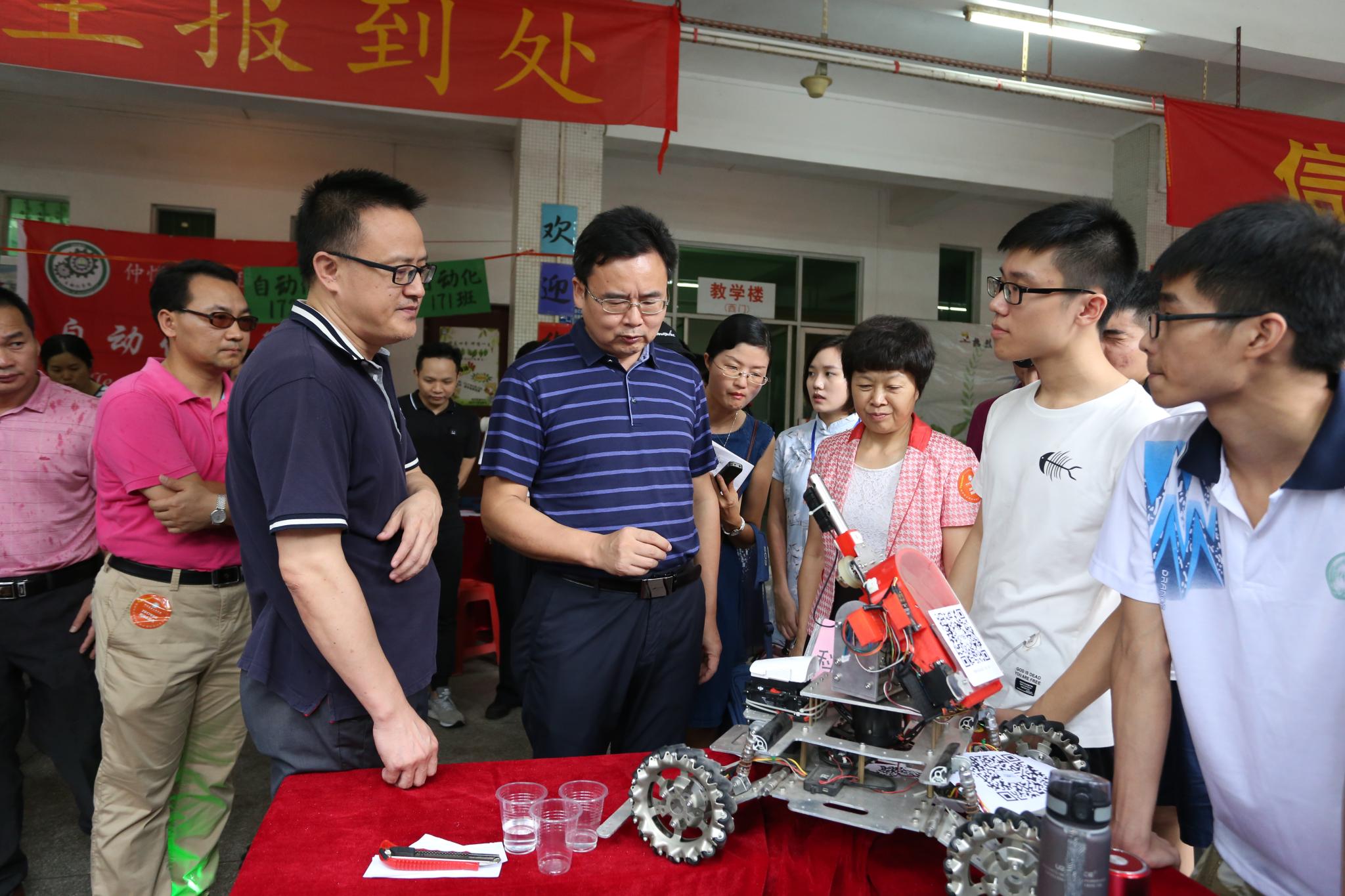 轻工食品学院制作了一面系统介绍院情的合影墙,校长骆少明称赞做法有新意。化学化工学院迎新横幅的内容是“化工Zn As我们在这里”,巧妙地运用了化学元素,校长称赞了化工学子的奇思妙想。在园艺园林学院迎新点,辅导员余倩花老师向校长报告了今年的招生情况,并展示了展现该学院特色的盆栽设计、kt板制作的本院教师风采。动物科技学院今年创新了报到方式,新生通过扫描报到点的二维码即可以同步进行报到和领取物资,全过程只需3-5分钟,大大节省了排队等待的时间,方便统计报到人数。计算科学学院今年采用了白板投影,以动态的方式向新生介绍学校和该学院的情况。