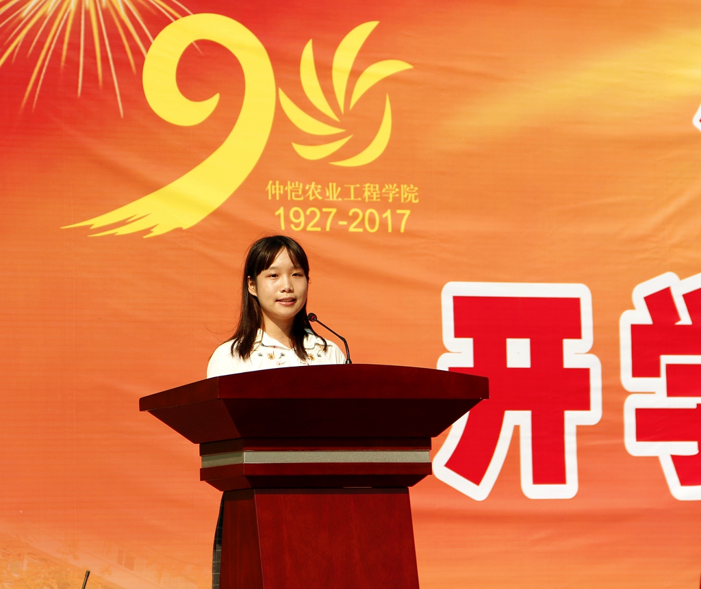 教师代表、动物科技学院院长林蠡教授发言。他以自身的学习经历勉励新生要不忘初心、用心做事,结合国家需要,树立自己的目标,做一个自豪的仲恺人。