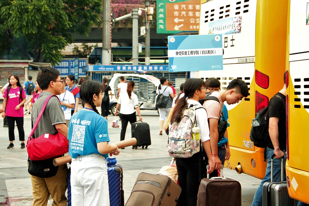 9月10日,我校学生团务中心和学生社团联合会的志愿者们分别在火车南站、火车东站、广州市火车站、天河客运站有序地开展2017级仲恺迎新活动。期间,校团委副书记杨珊珊、贺岚到场指导迎新工作。天初晓,仲恺迎新志愿者队伍就从学校出发,保证了新生能安全、快捷、顺利地到校注册。